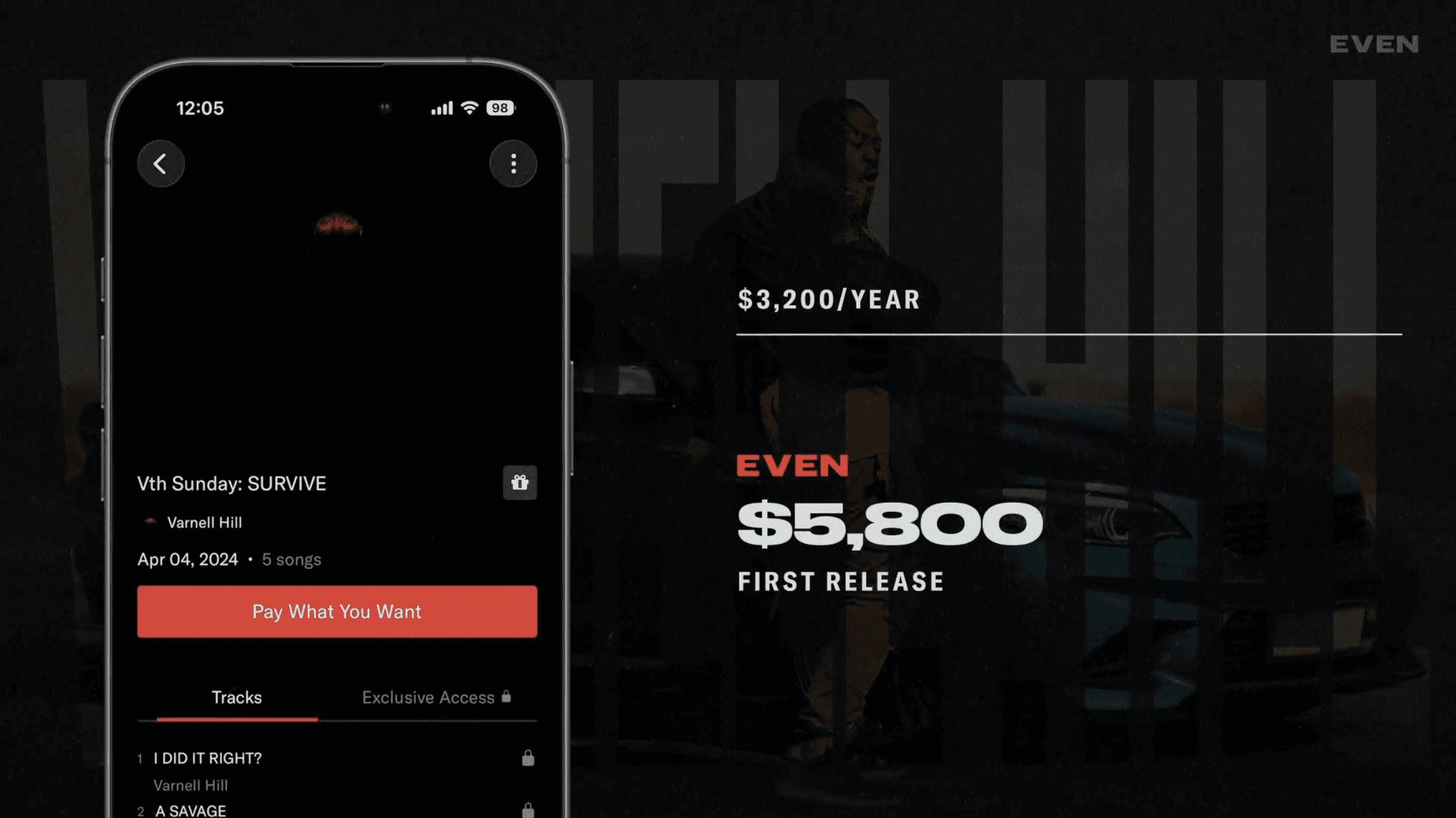 Varnell Hill was actually making decent money from streaming, pulling in $3,200 last year. But on his first release on EVEN, he made $5,800, nearly doubling his annual streaming revenue with one release. He’s since gone on to release three more on the platform.