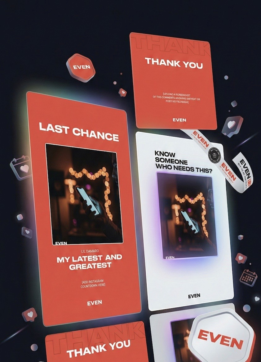 Always include your EVEN link. Every post is an opportunity to drive a sale. Make it easy for fans to go from seeing your graphic to being on your release page in two taps.