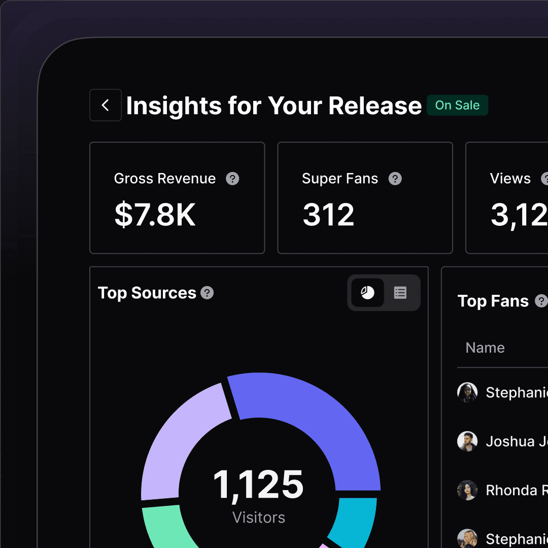 Insights was built to give artists clear, actionable data without needing to be data experts. You will see what is performing, who is buying, and how your work is growing all in real time.